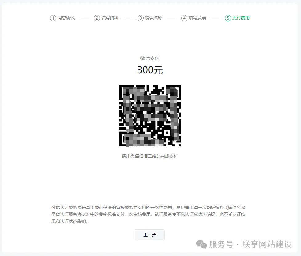 6、點擊下一步,進入最后環(huán)節(jié),填寫發(fā)票信息,納稅識別號(營業(yè)執(zhí)照上的統(tǒng)一社會信用代碼)支付認證審核費用300元,提交后注意接聽認證審核電話